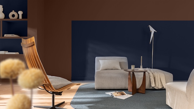 Azul Puro, nossa Cor do Ano 2026, é um matiz de azul com saturação média a baixa e luminosidade baixa. É uma cor autêntica e com muita personalidade, ideal para quem quer sair da rotina e construir ambientes com muita originalidade. Azul Puro é versátil e funciona muito bem sozinha ou como parte de combinações de cores mais complexas. Se você quiser ser ousado ou se preferir criações mais sutis, Azul Puro oferece infinitas possibilidades.