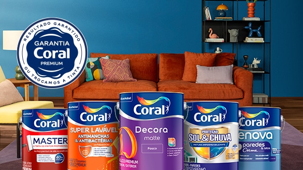 É a garantia para toda linha de paredes Premium Coral. Se você não ficar satisfeito com o resultado da cor, acabamento ou cobertura no momento em que pintar, nós trocamos a tinta para você.