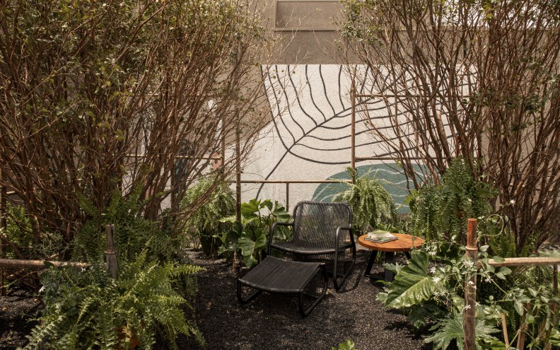 Eis um recurso simples, econômico e rápido para transformar os quintais. Em geral, esquecemos o potencial que os desenhos têm de iluminar os muros. Aqui, os ramos criados pelas artistas da Lúdico Arte foram fundamentais para dar profundidade à área pequena. Evite os desenhos infantis. Prefira os abstratos e elementos estilizados, com cores neutras para trazer a elegância de que você precisa no jardim.