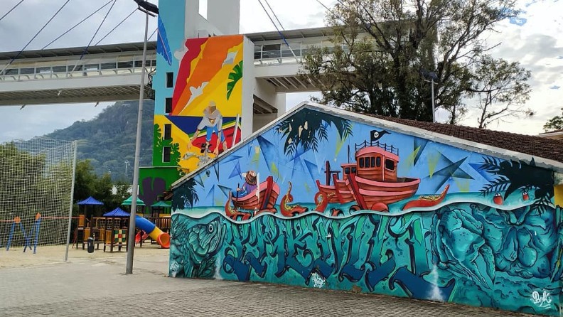 Destaque do projeto Janelas da Memória, a arte da passarela da Barra é assinada por um conjunto de artistas e representa a natureza, a vida e os costumes do bairro e da cidade de Balneário Camboriú. A intervenção virou um marco e mudou por completo o cenário e a paisagem local.